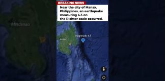 Near the city of Manay, Philippines, an earthquake measuring 4 3...